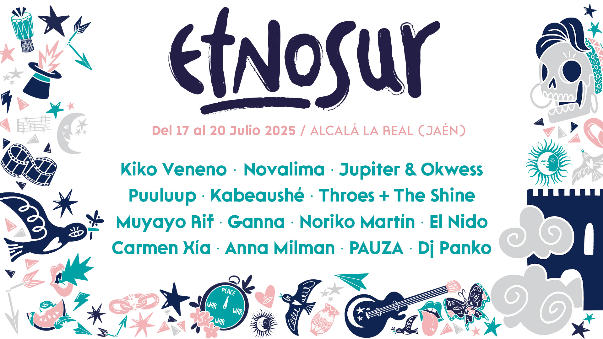 Del 17 al 20 de julio, Alcalá la Real volverá a ser ese crisol de culturas con la 28ª edición de Etnosur. Un cartel con Kiko Veneno, el nido, Jupiter & Okwess, Kabeaushé, Ganna y Noriko Martín, entre otros, va dando forma a un festival que este año pone el foco en los conflictos internacionales.